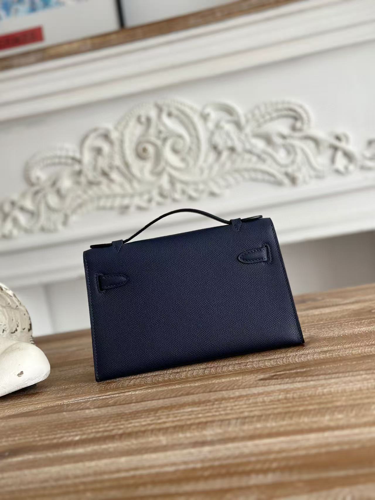 HERMES KELLY MINI POCHETTE 22 IN NAVY BLUE