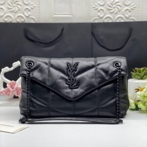 Saint Laurent Small Loulou Puffer shoulder bag in black with Chain Strap