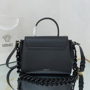 Versace La Medusa medium top handle bag in black grained leather